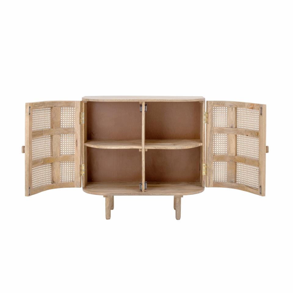 siinä on kaunis kaareva muotoilu. Ovet on koristeltu rottingilla ja