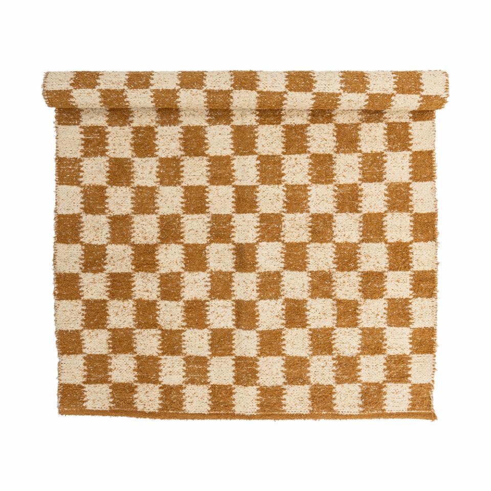 Värikäs Bloomingvillen puuvillamatto trendikkäällä ruutukuvioinnilla.
