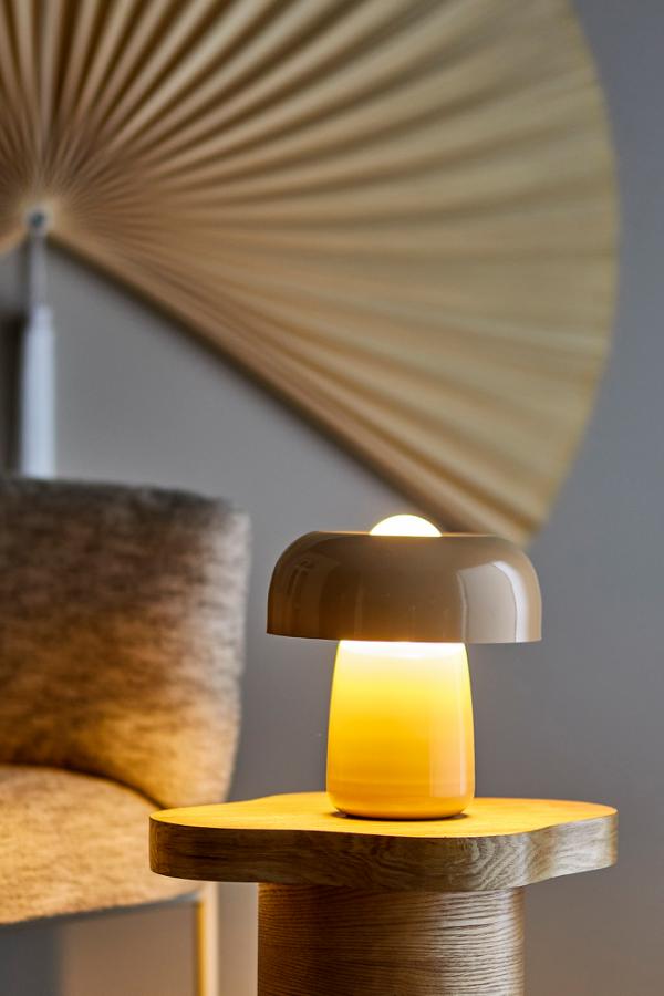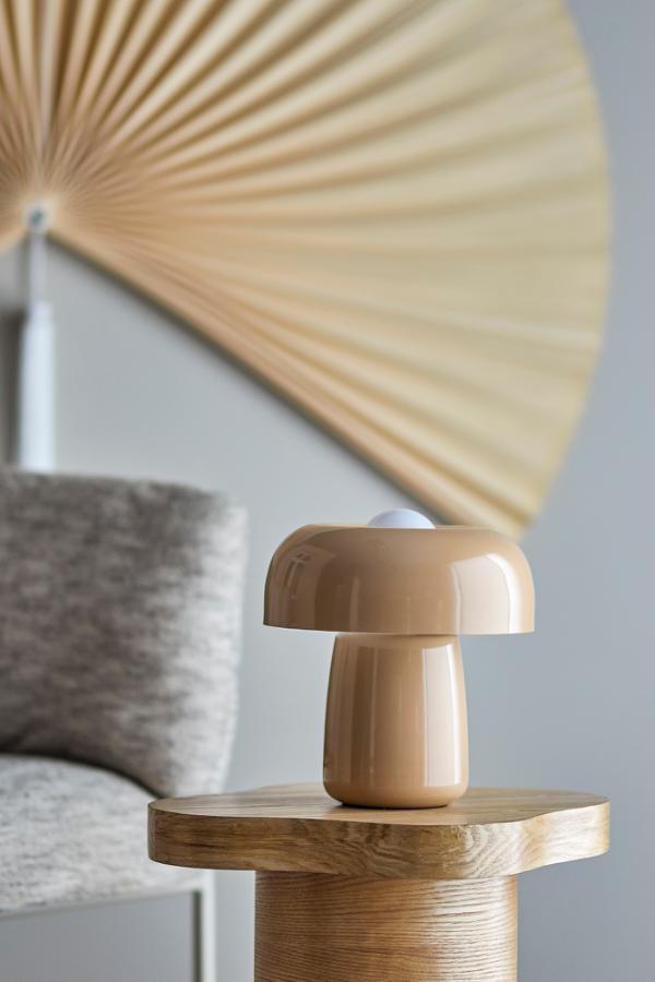 sen pinta on sileä ja kiiltävä. Sen sienenmuotoinen siluetti ja