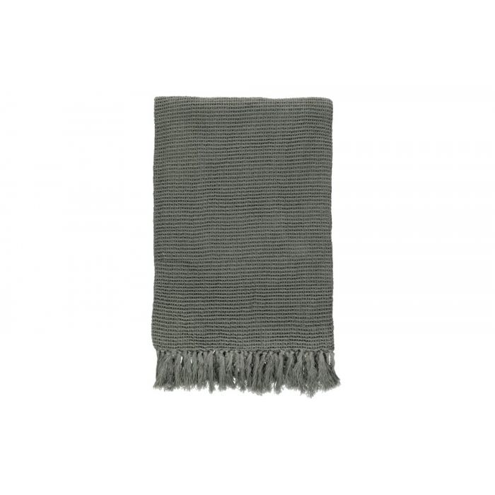 Vohvelipintainen ja rennon tyylikäs Fanni K Vohveli torkkuhuopa on valmistettu 100% kierrätysmateriaalista ja siinä on päissä solmitut hapsut.