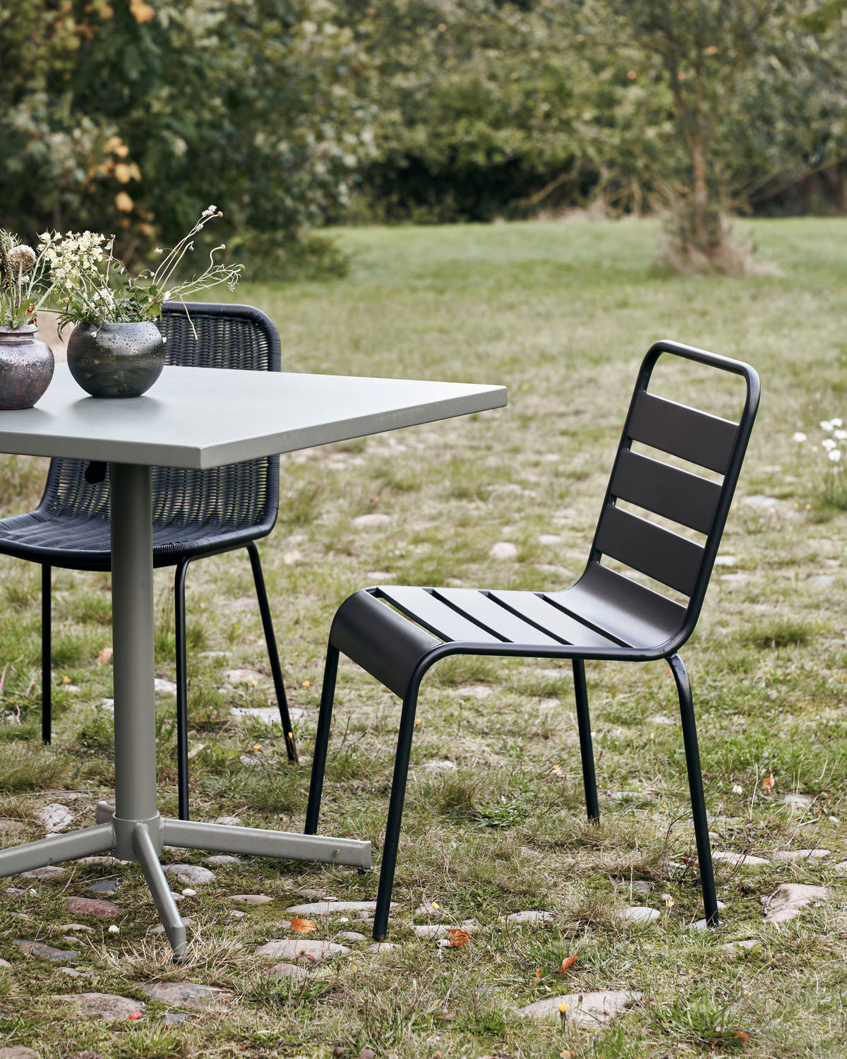 puhtaana,koska tuoli on valmistettu metallista. Tuoli on myös pinottava,joten tuoleja voi säilyttää kätevästi pienessä tilassa.