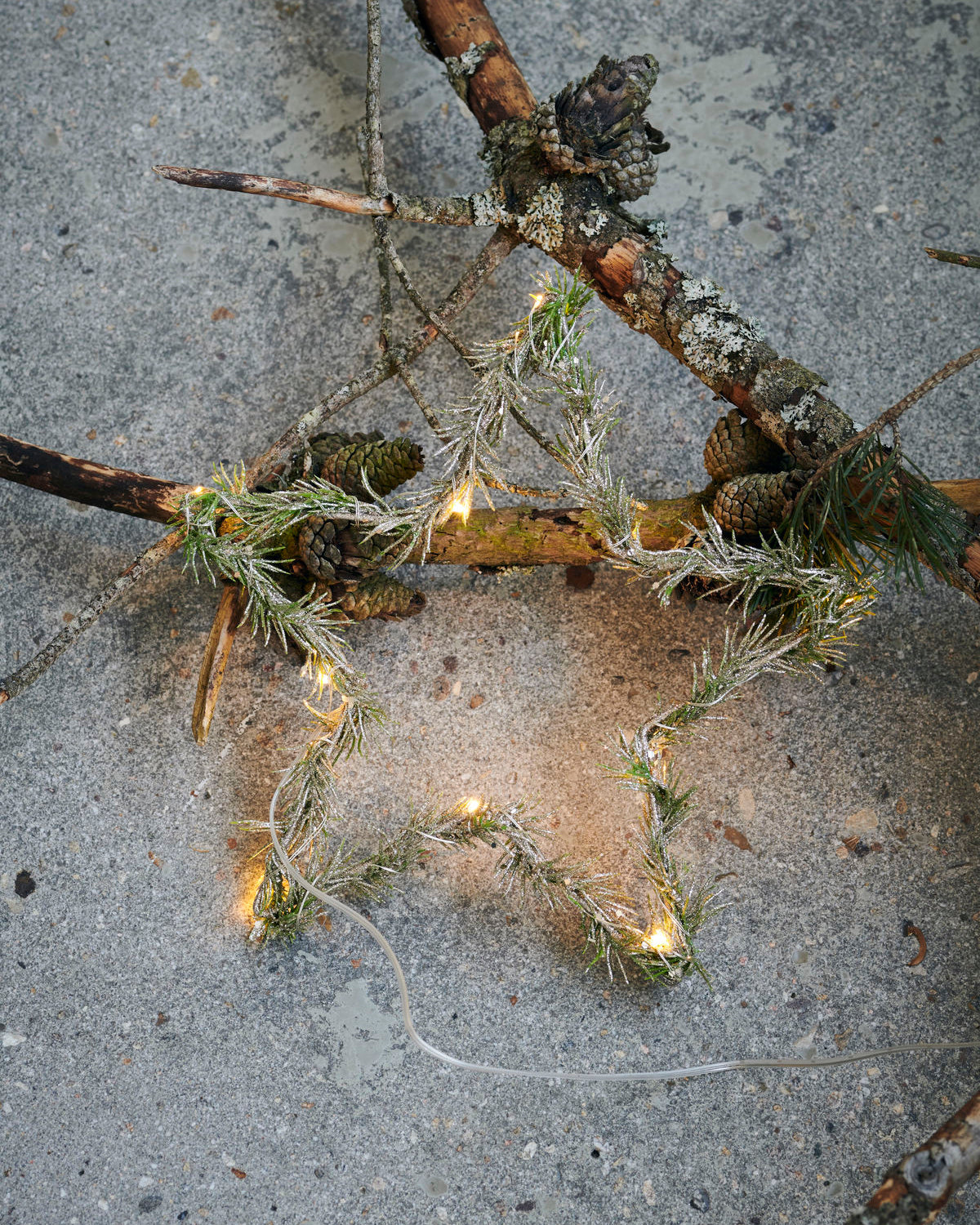 House doctorin tähtikoriste 10:llä led valolla ja aidonnäköisillä neulasilla.
