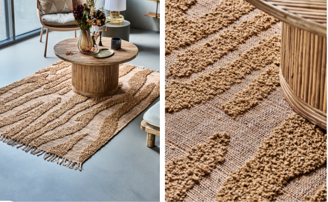 House Doctorin tyylikäs juutti-polyesteri matto. Matossa trendikäs kuviointi.