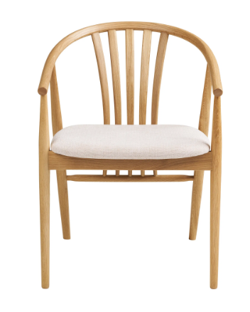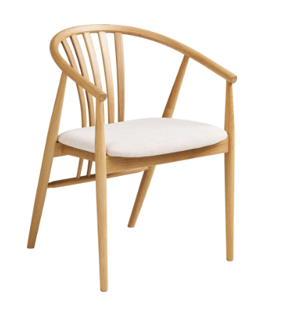 Trendikäs uutuus House Nordicilta. Agustin tuoli sopii hyvin ruokapöydän tuoliksi. Tuolissa on pehmustettu kangaspäällinen ja puuosat ovat FSC- tuotettua tammea.