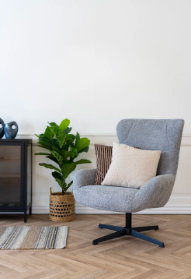 House Nordicin mukava lounge tuoli pyörivällä toiminnolla.