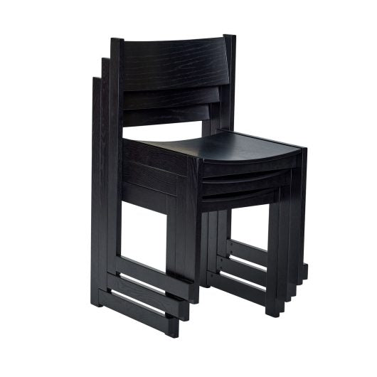 Hübschiltä tyylikäs ja ajaton tuoli ruokapöydän tuoliksi. Tuoli on maalattu mustan väriseksi ja se on tehty tammivanerista ja tammesta. Tuoli on lisäksi pinottava, mikä mahdollistaa säilytyksen pienessä tilassa.