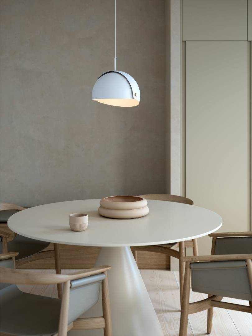 Align on tanskalaisen Maria Berntsenin suunnittelema tyylikäs ja moderni valaisin, joka kannustaa vuorovaikutukseen ja herättää uteliaisuutta. Valaisimen sisävarjostin on kiinteä, kun taas ulkovarjostin on helposti siirrettävissä tarpeen mukaan. Muotokieli on yksinkertainen mutta leikkisä, satiinisen pehmeällä mattapintaisella pinnalla ja kauniilla messinkisillä yksityiskohdilla.